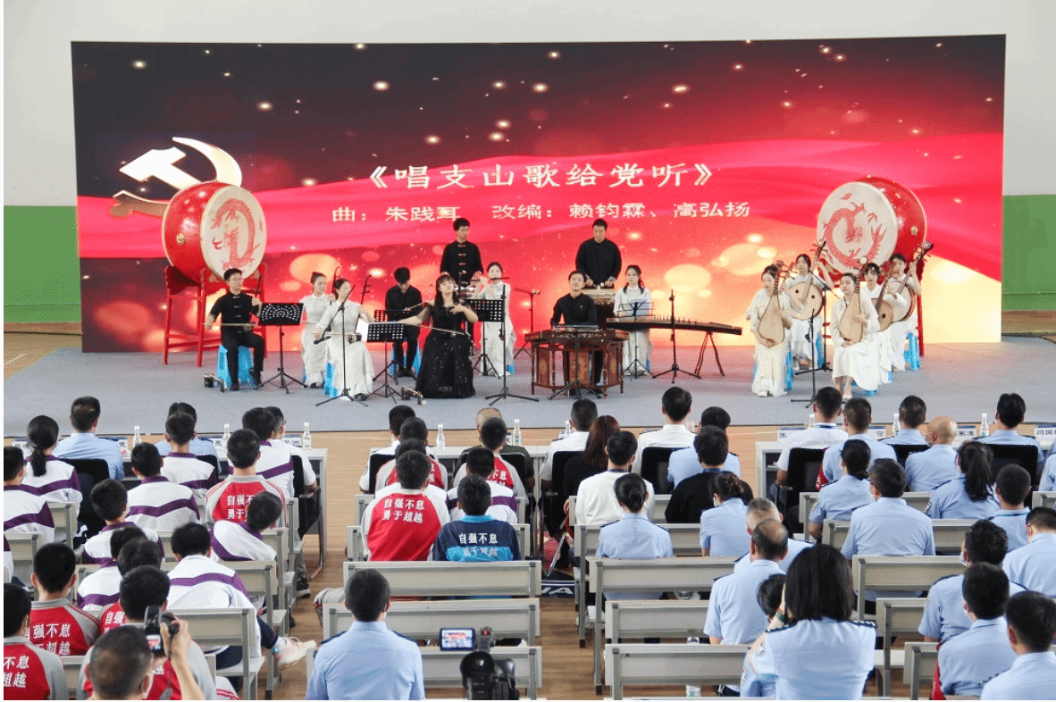 《“音”你而来——音乐思政辅助矫治戒毒青年志愿服务项目》,以“音乐思政+辅助矫治戒毒”为宗旨,针对性开设民族音乐体验课,由团队师生介绍中国传统民族乐器和讲授相关理论课程,以戒毒人员为主体让其融入音乐中,用音乐这双无形的手对他们开展柔性疗愈。该项目得到了戒毒所领导的高度重视和肯定,获得了良好的社会反响,扩大了团队影响力,展现了买球学子精神面貌,体现了艺术服务社会的本质。