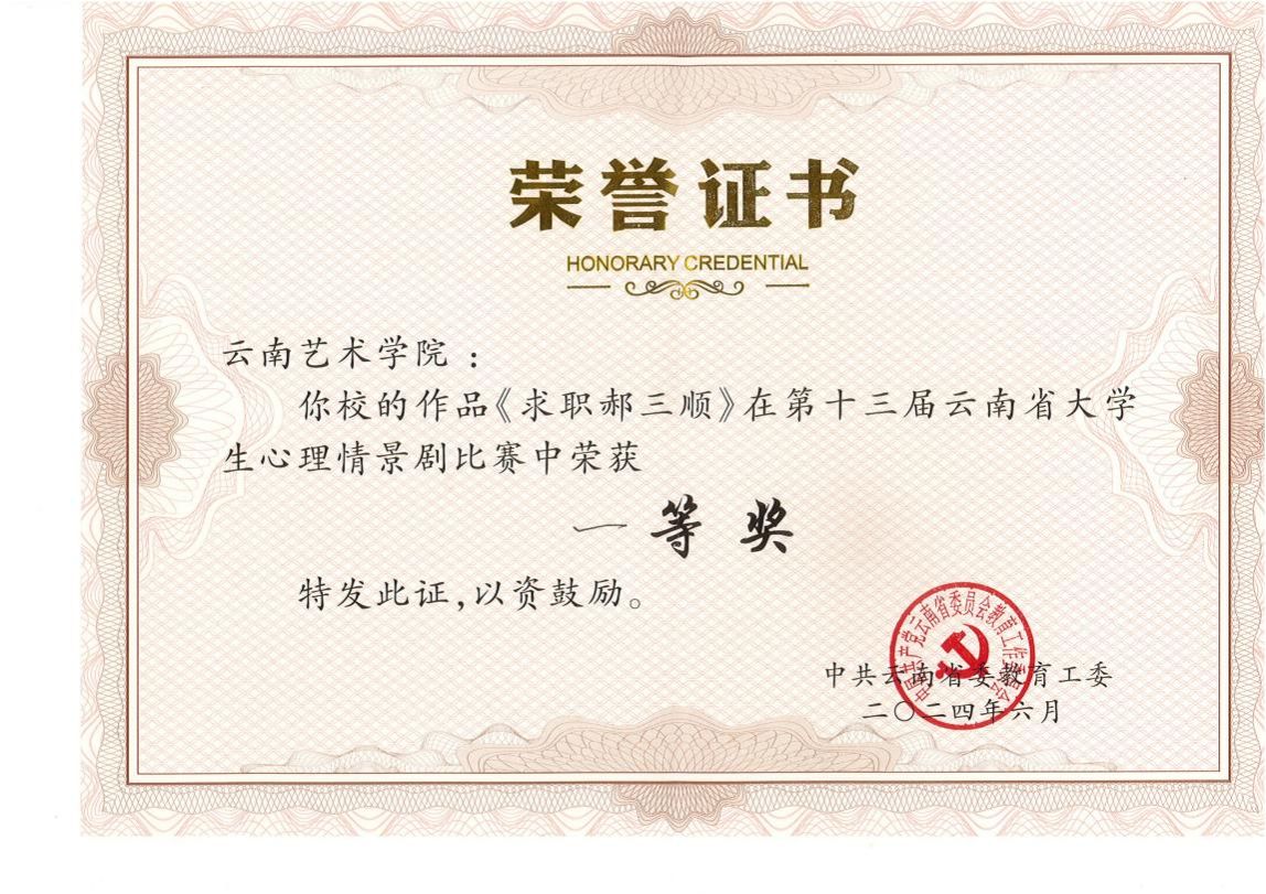 6月6日,由中共云南省委教育工委举办的第十三届云南省大学生心理情景剧决赛在云南省交通职业技术学院落下帷幕。经过激烈角逐,买球参赛作品《求职郝三顺》最终以第一名的成绩从进入决赛的15个参赛剧目中脱颖而出,斩获一等奖。