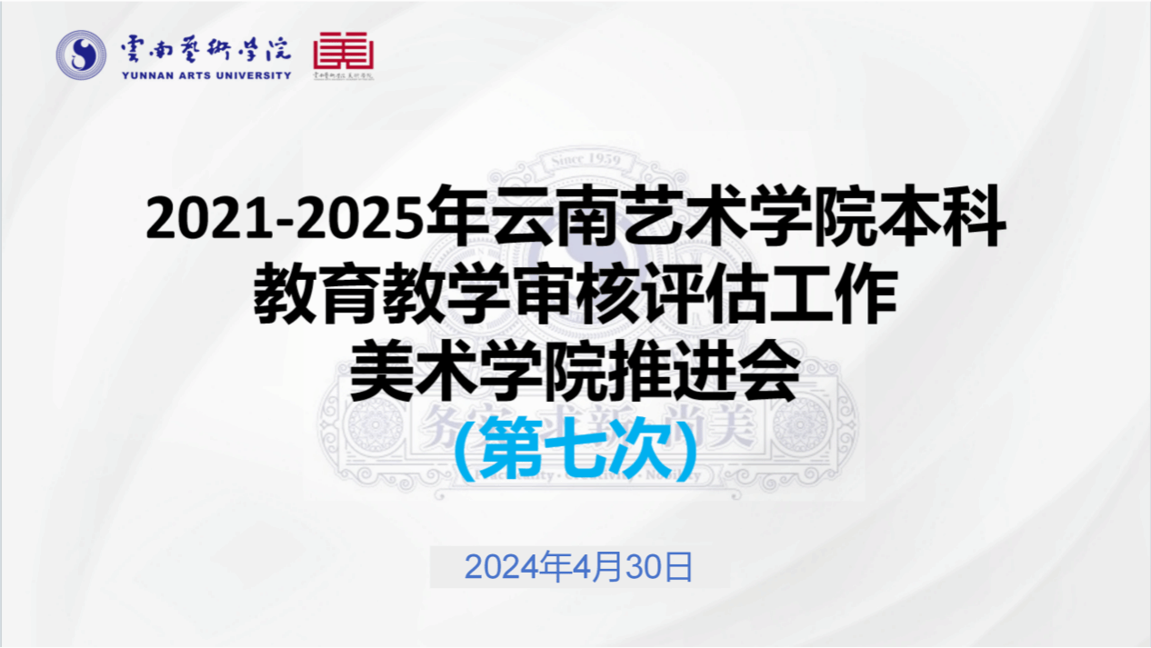 美术学院于2024年4月30日在美术楼217会议室召开《美术学院教育教学评估推进会(第七次)》。此次会议,由美术学院院长曹悦主持、党政领导、各科室负责人、各系系主任、美术学院评估工作人员参会。会议就学校的审核评估工作会提出的评估指标体系问题清单进行自查、自纠梳理及下一步工作安排。