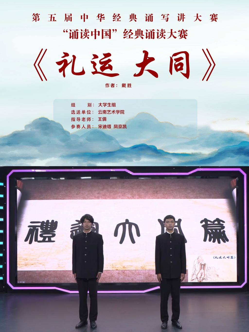 其中,戏剧学院彭冬雪老师获优秀指导教师奖。由戏剧学院报送的四部诵读作品均在“云岭杯”中华经典诵写讲大赛·诵读大赛中喜获佳绩。