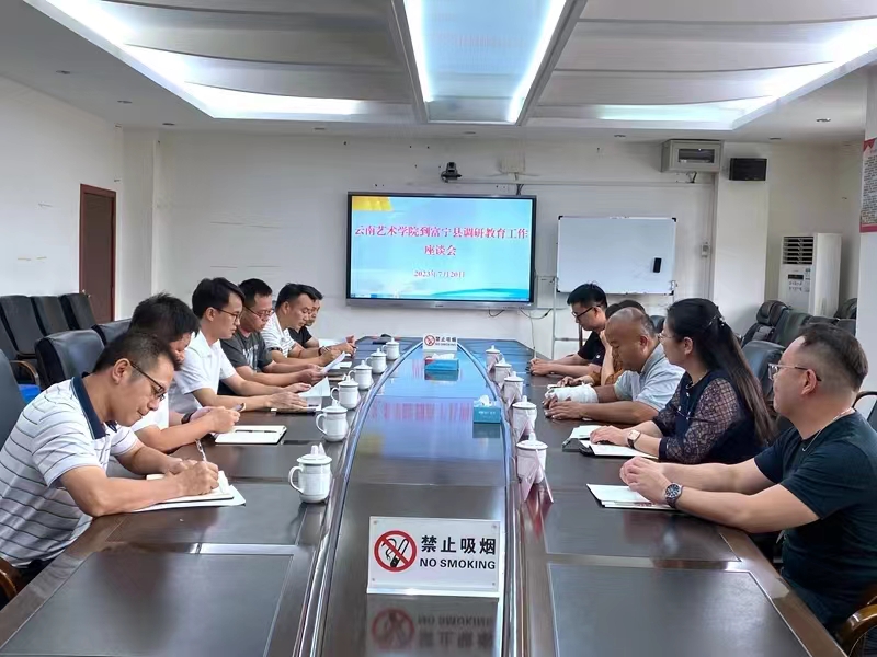 7月20日下午,调研座谈会在富宁县教体局三楼会议室召开,会议由县教体局张昌波局长主持。首先,张昌波局长介绍了富宁县美育教学工作开展的情况。其次,县政府副县长人选李文雄介绍富宁县教育的发展概况。最后,杨国良副书记就本次调研活动的背景、目的与意义作简要发言。双方就富宁县的文化区位优势、教育概况以及未来教育发展展望等内容进行深入交谈。县教体局黄猛副局长以及相关部门负责人参与当天座谈。