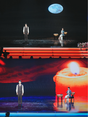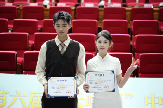 戏剧学院23级播音班周佳怡,李伯航的朗诵作品《我们的乡愁》在本次大赛中获得一等奖,受邀到香格里拉进行展演,并参加颁奖仪式。