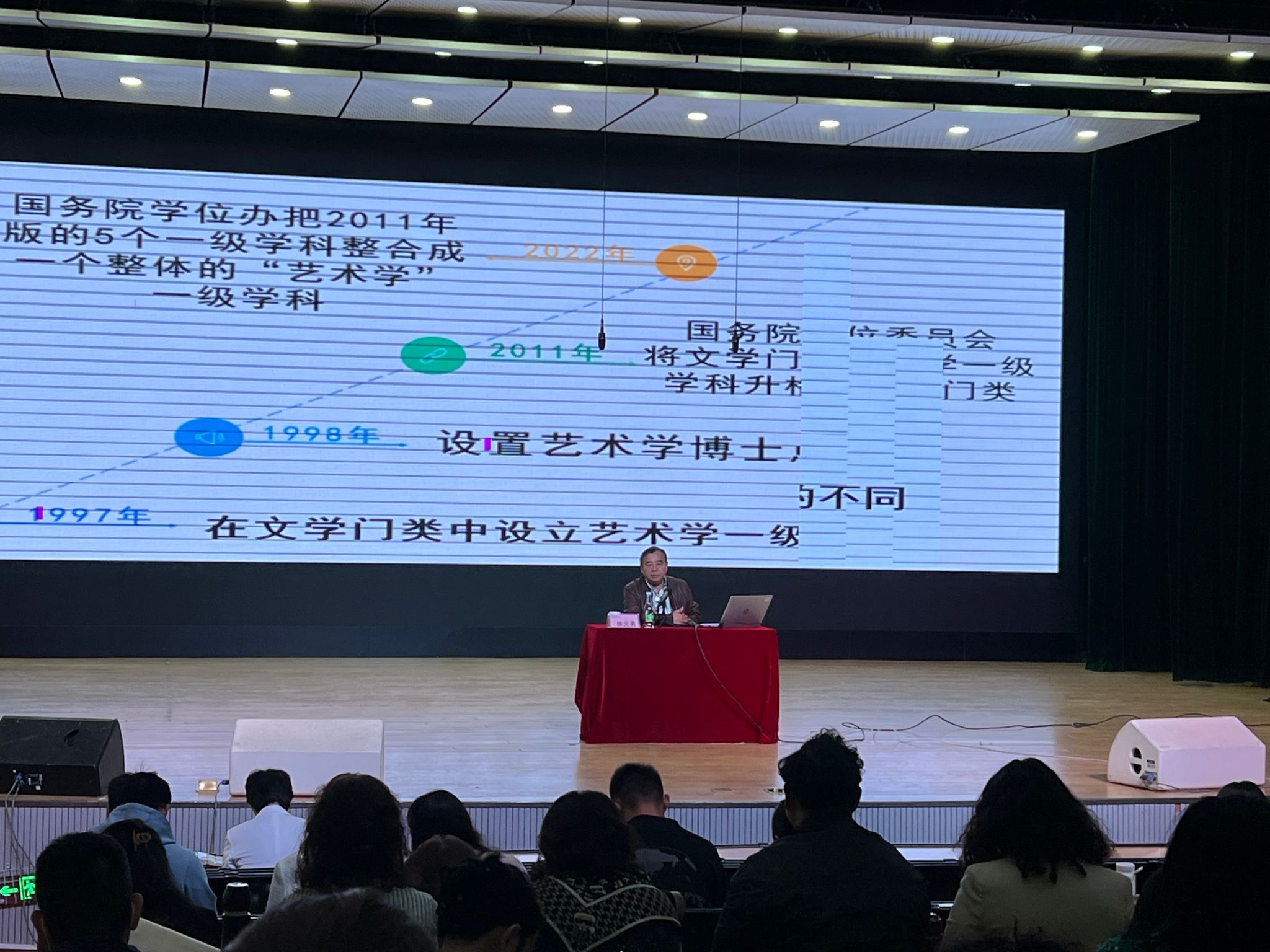 关于“艺术学”一级学科,徐元勇教授从三个方面做了解读。第一个方面是“艺术学”一级学科建设是中国特色社会主义文化建设的重要组成部分,我们应充分利用我国自古至今丰厚优秀的艺术文化“史论评”资源,在艺术专门种类历史、理论、批评研究的基础上,联通、融合整体艺术学规律的探索。第二方面提出“艺术学”既研究专门艺术种类“史论评”又探究艺术普遍规律,“艺术学”一级学科建设需要理论与实践多方面学者的共同参与。第三方面为“艺术学”一级学科是我国艺术理论人才培养的重要教育、教学体系,强调要充分理解和贯彻国务院学位办的指导思想,让各个学校自主设置二级学科,依据各个学校的师资力量、区域优势、学术团队,选择人才培养的个性方向和定位。