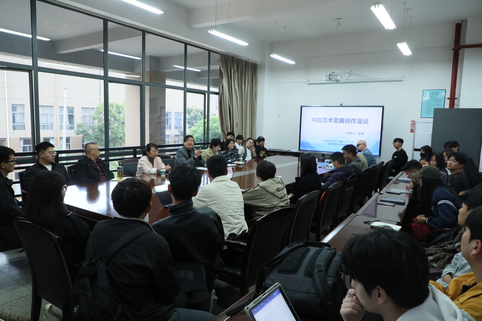 2024年10月8日,中国著名作曲家、国家一级作曲、湖南省文联名誉副主席、中国音乐学院特聘教授孟勇应邀在买球投注官方网站音乐学院A301召开了主题为“中国艺术歌曲创作漫谈”的专题讲座。音乐学院党委副书记、院长林林,音乐学院副院长侯静宜,理论作曲系系主任田建华,以及全体作曲系专任教师和部分作曲系研究生、声乐歌剧系教师及研究生参加了本次讲座。