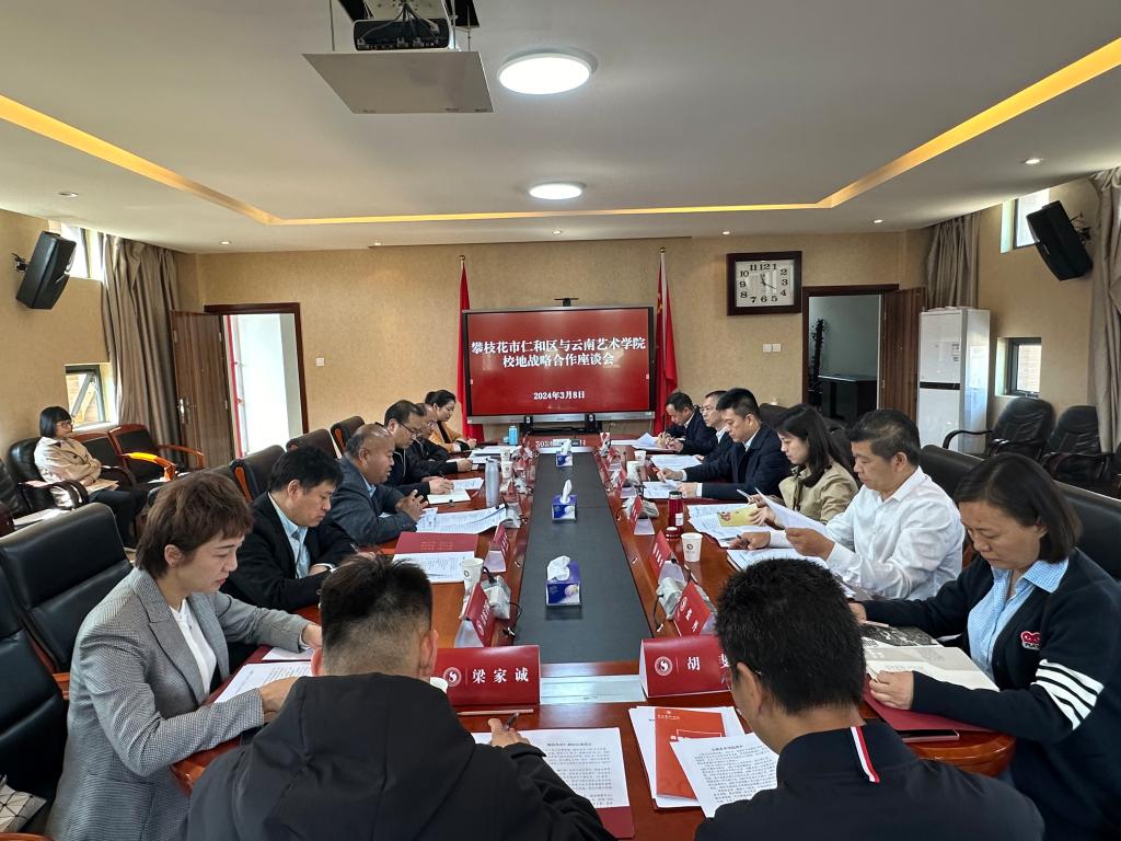 3月8日,四川省攀枝花市仁和区委书记班宏率区委宣传部、组织部、教体局、人社局、文广旅局和平地镇有关负责同志到买球投注官方网站调研交流,商谈校地战略合作事宜。学校党委副书记杨国良、副院长郎启训及相关部门负责人参加了活动。