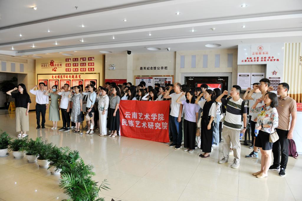 6月2日,买球投注官方网站民族艺术研究院前往玉溪市开展“传承红色基因,感受国歌情怀”主题党日活动,民族艺术研究院党总支书记迟燕琼教授、副书记杨明珠教授、行政副院长李异文教授,以及各教师代表、学生党员代表参加。活动内容围绕守护红色资源、传承红色基因、弘扬爱国精神展开,旨在引导师生深入学习红色文化,增强党性修养,推动社会主义核心价值观在校园中的传承和弘扬。