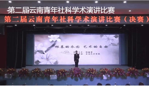 11月7日,由云南省社会科学界联合会主办的第二届云南青年社科学术演讲比赛的决赛在昆明理工大学呈贡校区举行。民族艺术研究院教师郭瀚繁在本次比赛中以《根基的永固与艺术的自由》为题,围绕云南传统民族舞蹈对艺术的根基与自由进行探讨,荣获本次比赛一等奖。