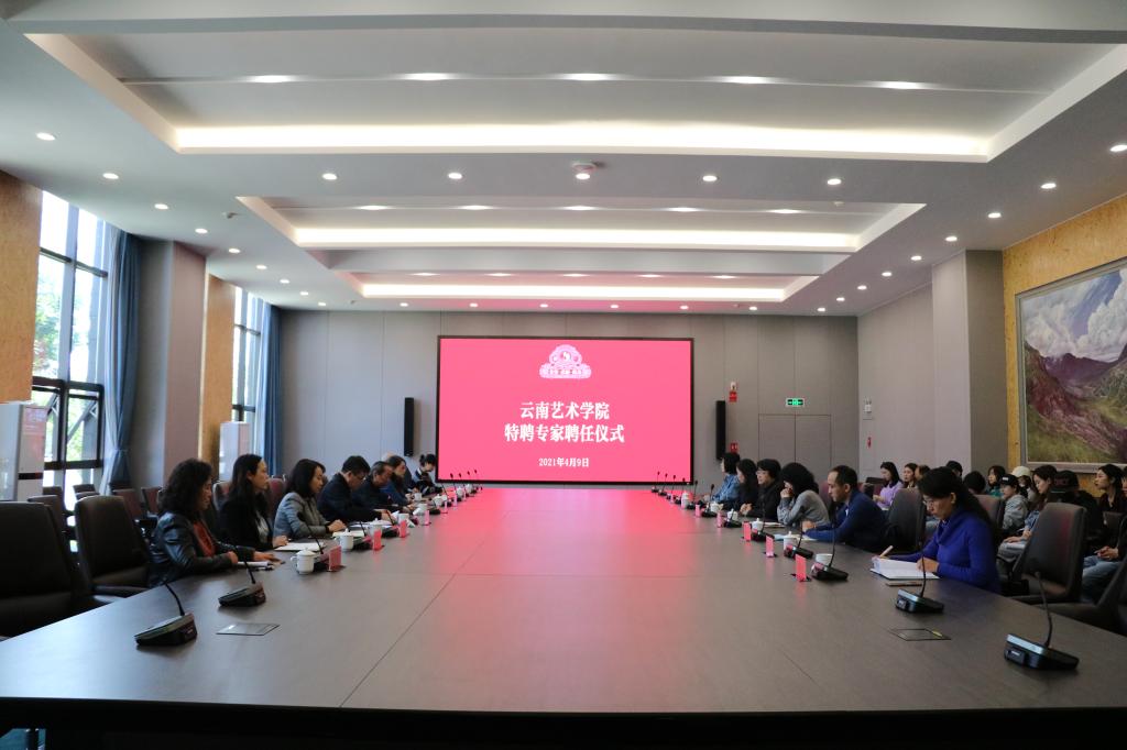 2021年4月9日上午10:00,学校在图书馆会议室隆重举行了学校特聘专家聘任仪式。买球投注官方网站院长兼民族艺术研究院院长郭浩教授,买球投注官方网站副院长兼民族艺术研究院常务副院长、设计学院院长陈劲松教授出席了本次会议,出席本次会议的还有:科学技术处处长曹悦教授,研究生处副处长杨俊霞教授,人事处副处长普文芳老师,美术学院院长兼民族艺术研究院副院长陈流教授,音乐学院副院长侯静宜教授,以及民族艺术研究院党政全体人员、专职研究人员和部分学生。