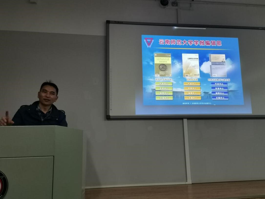 2020年11月11日周三下午17:00时,买球投注官方网站民族艺术研究院邀请云南师范大学编审、民俗学博士、博士生导师黄龙光教授,在公教楼A302作了一场题为《学术期刊论文撰写与发表》的学术讲座。本次讲座由魏美仙教授主持,全校多位教师及学生到场聆听,座无虚席。