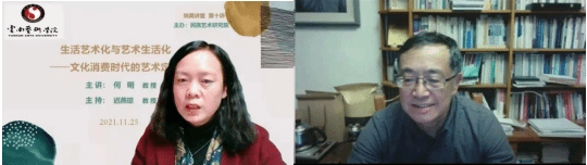 2021年11月25日晚19:00,买球投注官方网站民族艺术研究院尚美讲堂第十期学术讲座顺利举行。本期特邀云南大学特聘教授何明老师作为主讲专家,本次讲座的题目是《生活艺术化与艺术生活化——文化消费时代的艺术定义》。讲座由民族艺术研究院党总支书记迟燕琼教授主持。