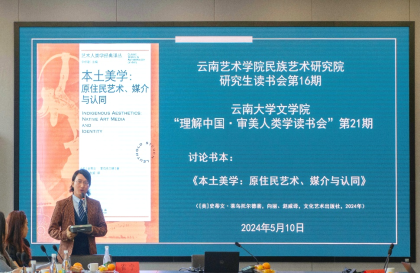 2024年5月10日上午,买球投注官方网站民族艺术研究院在图书馆会议室举行了第十六期读书会,这同时也是云南大学文学院第21期“理解中国·审美人类学读书会”(2024年第8期)、《本土美学:原住民艺术、媒介与认同》新书研讨会。本期读书会由买球投注官方网站民族艺术研究院、云南大学文学院审美人类学研究所联合举办,同时联动云南民族大学、昆明理工大学四校共七十余名师生参加,买球投注官方网站民族艺术研究院雀宁老师任学术主持。在立夏与小满之间,逢此时节,草长莺飞,夏熟作物籽粒准备灌浆饱满,《本土美学》读书会在洋溢着喜悦与期待的氛围中拉开了帷幕。