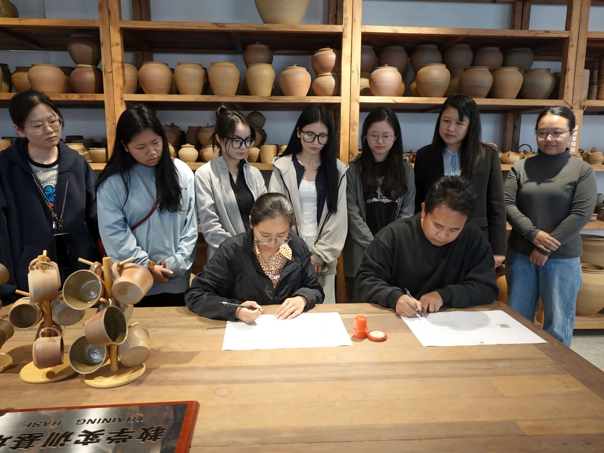 当日,买球投注官方网站的师生与勐海县委宣传部分管领导,先后为勐海县勐混曼召傣族传统手工造纸专业合作社、勐海象往阳光文化发展有限公司、西双版纳勐景来景区管理有限公司、西双版纳雅航然咀竹业有限公司、勐海祥润土陶坊5家单位进行挂牌。仪式上,勐海县委宣传部与合作双方单位均表达了对此次平台建设的期待,希望通过校地合作,推动勐海县文化事业繁荣发展。并和实训基地负责人进行了交流座谈,对未来合作展开了深入探讨。