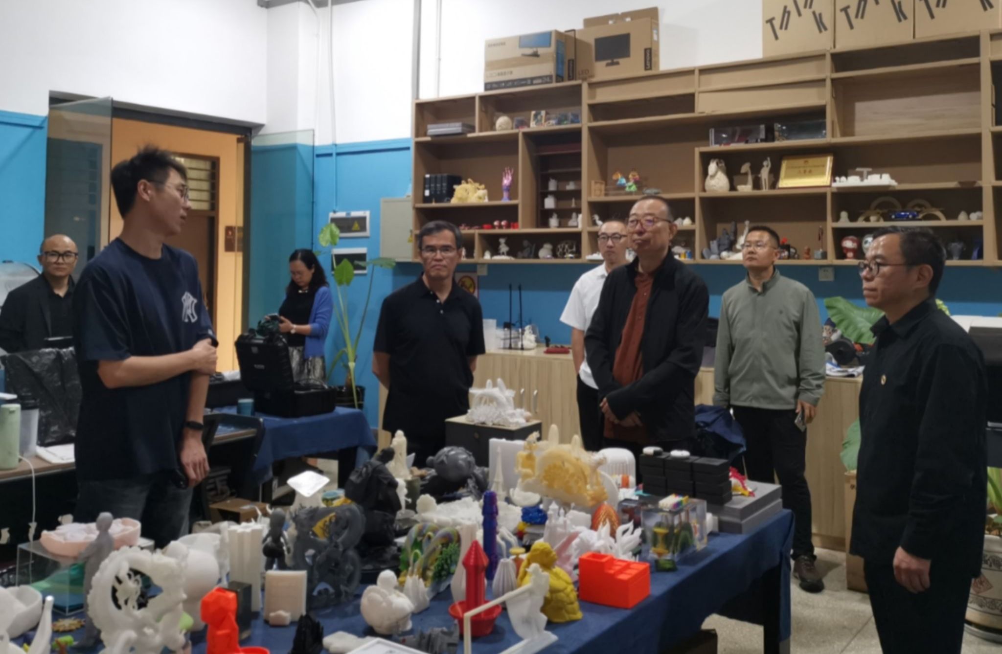 随后,调研组深入设计学院、美术学院,重点考察扎染、玉雕、金属工艺、版画等传统工艺实训室,同步调研数字媒体艺术等新兴实验室。潘鲁生高度评价买球投注官方网站将传统工艺融入现代设计教育的人才培养模式,指出实训平台既是应用型艺术人才的孵化器,更是坚定文化自信的实践课堂。