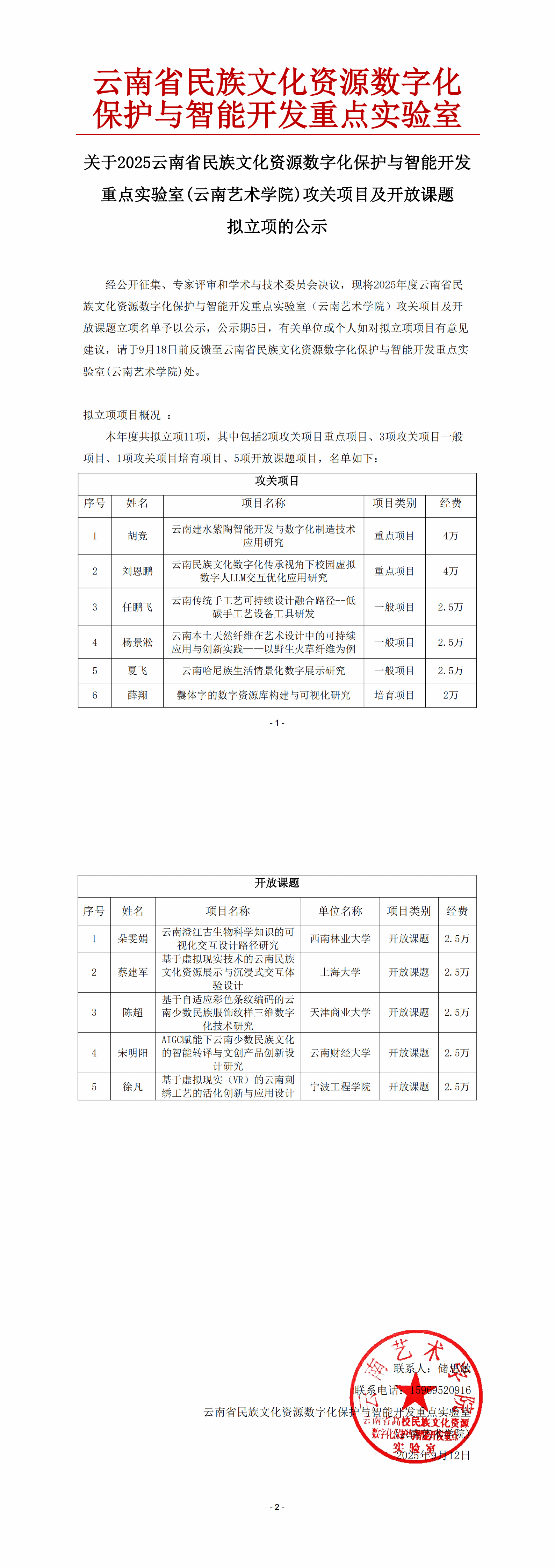 上一条:关于2025年度云南省高校民族文化数字媒体与动漫创意设计工程研究中心(买球投注官方网站)攻关项目及开放课题拟立项的公示