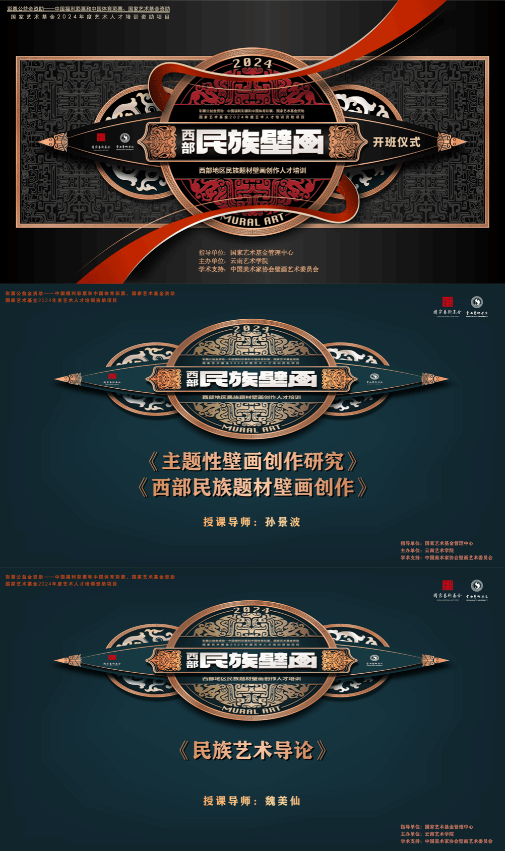 “西部地区民族题材壁画创作人才培训”项目依托西部地区丰富的地域文化和多民族艺术资源,将民族文化引入壁画创作人才培养,通过搭建资源共享与协同创新的艺术教学交流平台,整合全国壁画创作与教学的优势资源,有效地推广区域民族文化,推进传统文化“活化”,促进中国壁画事业的发展。发挥壁画的公共文化服务功能,赋能文旅发展与文化创意的产业价值,激发文化认同、坚定文化自信。项目周期为2024年6月至2025年6月,集中授课45天,预计2025年3月举办成果展。