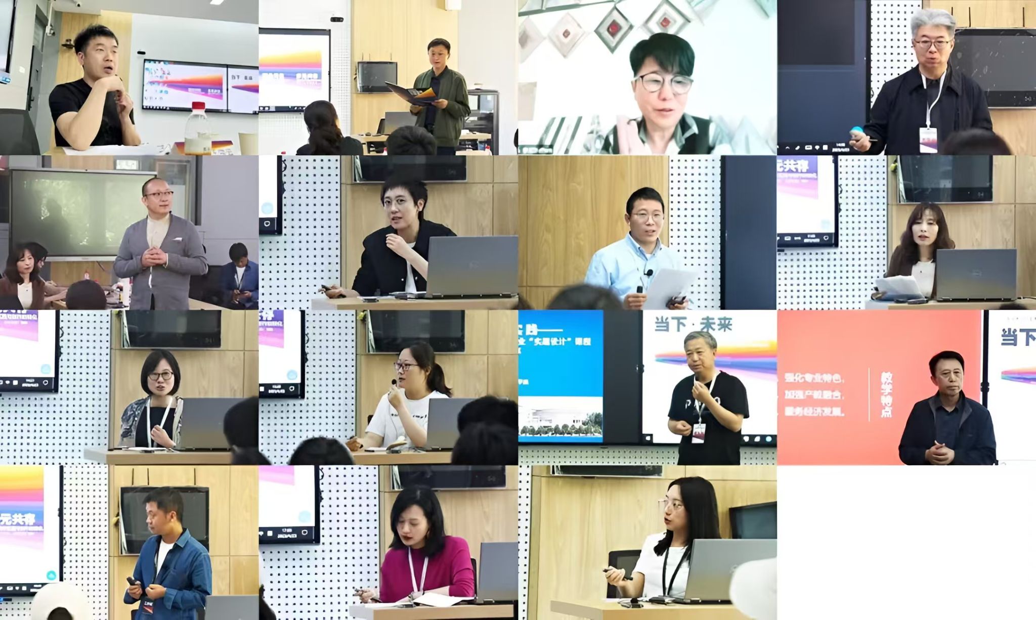 李辰以线上发言的方式参加会议,分享了中央美术学院变迁和社会发展变革的大背景下教学主张的演变和课程设置的安排。王长兴介绍了中央美术学院壁画系目前的基本教研架构及各个工作室的教学方向与主干课程以及近几年在社会服务、科研工作等方面成果,并就壁画艺术当下面临的包括学科建设、网络及AI技术时代背景下壁画艺术面临的课题与挑战提出自己的看法。田林涛介绍了广州美术学院工艺美术学院的《广彩》课程教学。孙韬提出主题创作的内涵和外延,以及在进行大型壁画创作中所遇到的问题以及需要具备的精神品质。李靖以壁画设计与城市更新为主题展开发言,思考了壁画创作中从整体出发,思维转变,城市形象的关键信息。伍璐璐介绍了天津美术学院壁画专业运用AI进行的基础与创作结合的特色课程。吕晓雯谈到了当代壁画教学中多元融合的创作方式和创作主题,开放、包容的培养方式。李崇辉提到内蒙古师范大学美术学院壁画专业虚题实做的教学方法。高振堂介绍了山东工艺美术学院壁画专业发展状况和课程设置及就业情况。彭飞介绍了买球投注官方网站壁画专业的发展状况和课程设置,提出了以实际运用场景导向课程设计的重要性。李端妮就武汉设计工程学院公共艺术学院壁画课程设置以及实践性教学案例作了分享。马剑丹畅谈数字壁画在未来发展的重要性。李丹介绍了通过马赛克镶嵌工艺对中国传统壁画表现的语言转换,道出中国传统壁画新的可能性。会议最后由学术主持赖军,会议主持王洪云进行总结发言。