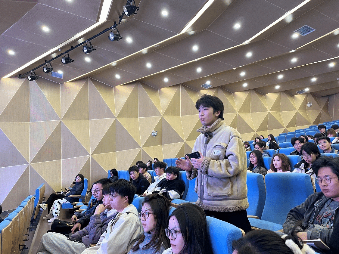 周刚教授用通俗的语言讲述了绘画中形与美的专业学术知识,得到了同学们的高度认同,使得学生们有了新的理解和感悟。在讲座的提问环节,同学们积极思考,踊跃提出了自身在学习和创作过程中的各种疑惑,周刚教授耐心针对同学们的问题并从实践和积累角度进行了解答。