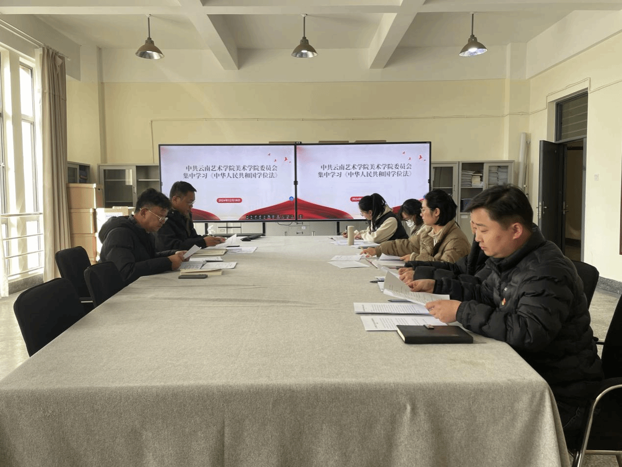 按照买球投注官方网站贯彻实施《中华人民共和国学位法》工作方案要求,美术学院于2024年12月18日在中共买球投注官方网站美术学院委员会会议、美术学院教职工大会、共青团买球投注官方网站美术学院委员会会议中组织学习了《中华人民共和国学位法》。