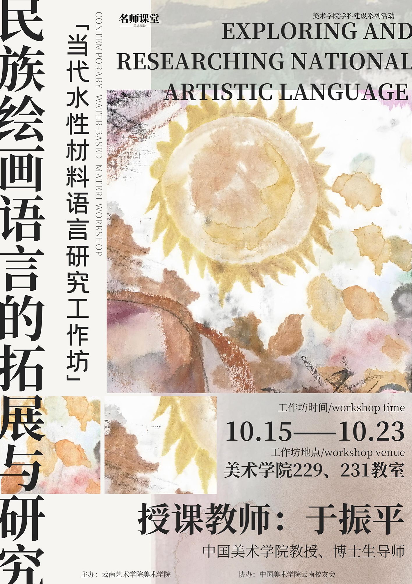 2025年10月15日,美术学院“名师课堂”系列——“当代水性材料语言研究”于振平教授工作坊开班仪式顺利举行,中国美术学院博士生导师于振平教授受邀在买球投注官方网站美术学院举办为期9天的工作坊,现场为师生开启了一场水性材料艺术的深度探索。