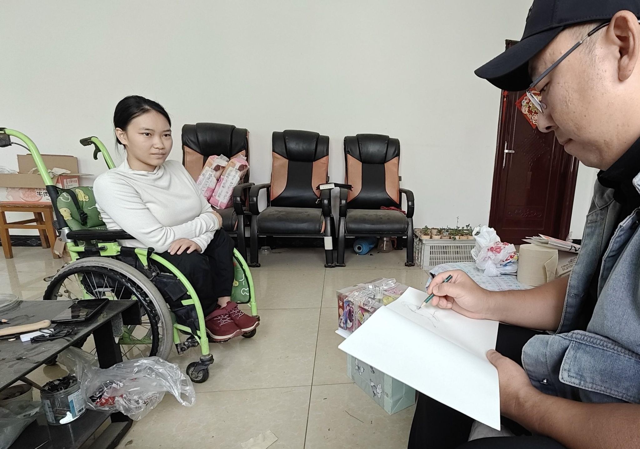 美术学院支教团队带队教师王哲明为钟同学作画现场