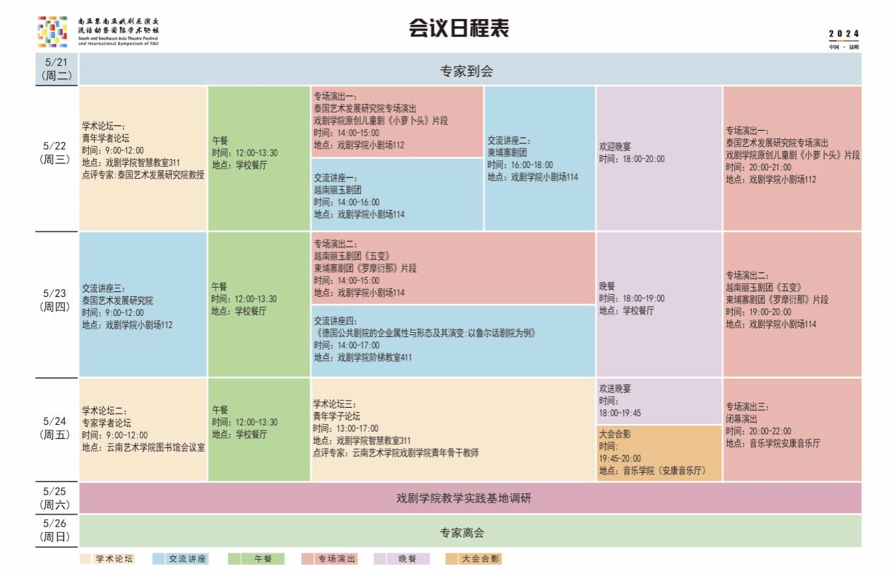 为深入研讨中国、南亚、东南亚戏剧类非物质文化遗产保护,云南戏剧的传承保护,云南与南亚、东南亚戏剧交流的地缘优势等问题,买球投注官方网站戏剧学院于2024年5月21日至26日举办首届“南亚东南亚戏剧展演交流活动暨国际学术论坛”。本次活动主要分为戏剧展演、教学讲座交流、学术研讨三个部分。来自泰国、越南、柬埔寨、新加坡的25位外国专家及国内近40位专家将围绕相关议题开展演出及学术研讨活动。
