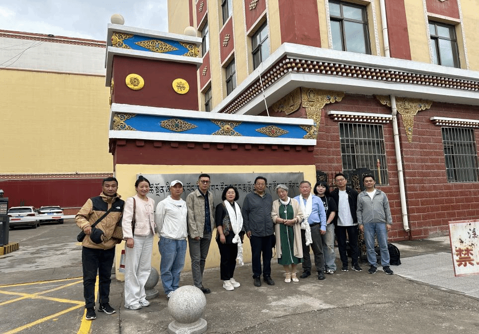 7月29日,课题组首席专家杨军,子课题负责人谭志湘、周靖波、苗露,课题组成员杨洋和张瑾一行6人前往青海省黄南藏族自治州,参加了由黄南州政府主办“2024年国家级热贡文化生态保护区建设成果展示季及第五届藏戏艺术展演周”,并进一步对黄南安多藏戏展开调研。课题组前往青海省藏剧团与仁青加团长、李加东周副团长及其他工作人员进行座谈交流。课题组还参观了剧团资料室,观摩了《金城公主》《白玛文巴》《赛马称王》等藏戏新剧目和传统剧目,走访安多藏戏起源地等,搜集了安多藏戏的重要一手材料。最后,仁青加代表剧团为课题组赠送了《黄南藏戏剧本集》等书籍。