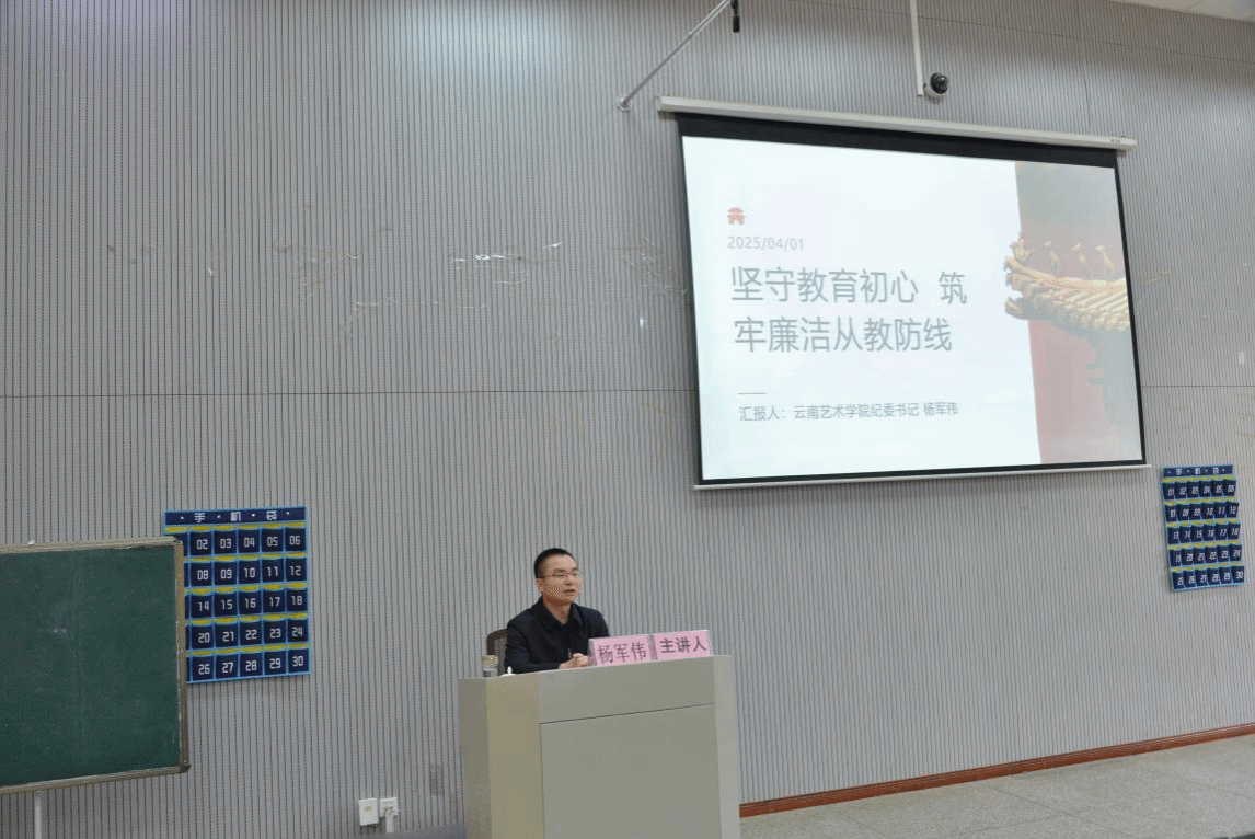 买球投注官方网站纪委书记、监察专员杨军伟同志以《坚守教育初心,筑牢廉洁从教防线》为题,深入剖析师德师风建设的重要性和廉洁从教的底线要求。他结合实际案例,强调教师要坚守职业道德,严守纪律红线,做到廉洁自律,营造风清气正的工作和育人环境,以良好的师德师风引领学生成长成才。