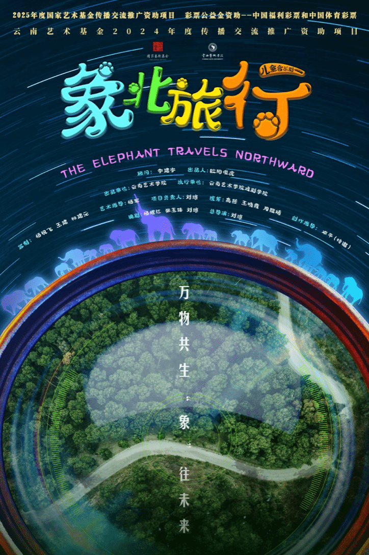 儿童音乐剧《象北旅行》根据云南野生大象集体北迁事件创作,以讲好“云南生态故事”为纽带,通过全剧拟人化表现热带雨林中丰富的各种动物、植物形象,载歌载舞、生动活泼地展现人与自然和谐共生的动人图景,为观众献上一场兼具思想深度与艺术美感的视听盛宴。