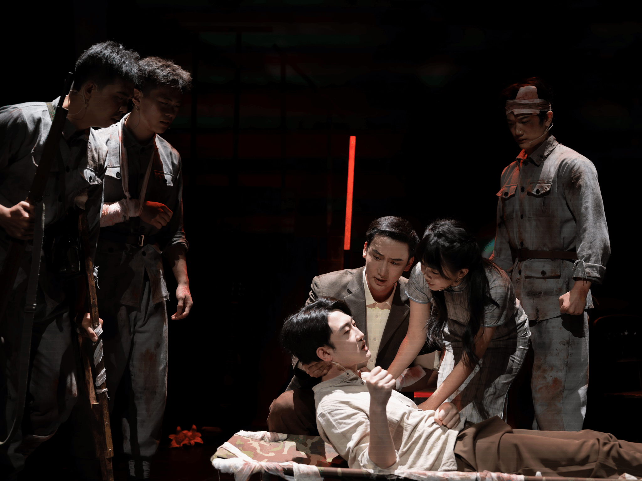 《新·回春之曲》在舞台上塑造了失忆的高维汉和被困的高维汉两个形象,他们之间的互动与冲突,进一步凸显了“回春”的意象,既指个人创伤的治愈,更象征民族精神的全面觉醒。同时,此次演出还保留了原作中的《梅娘曲》《告别南洋》等插曲,这两首歌曲以及《义勇军进行曲》均由田汉作词、聂耳作曲。值得一提的是,聂耳是云南籍的杰出民族音乐家,《新·回春之曲》在滇的演出不仅是对田汉的缅怀,也是对聂耳的致敬。