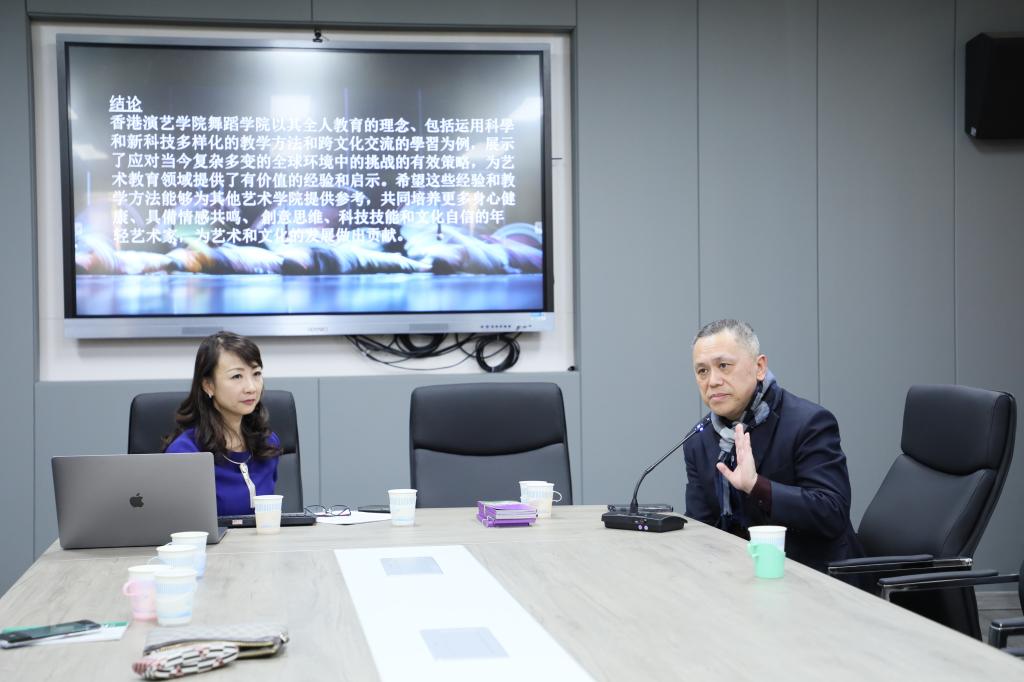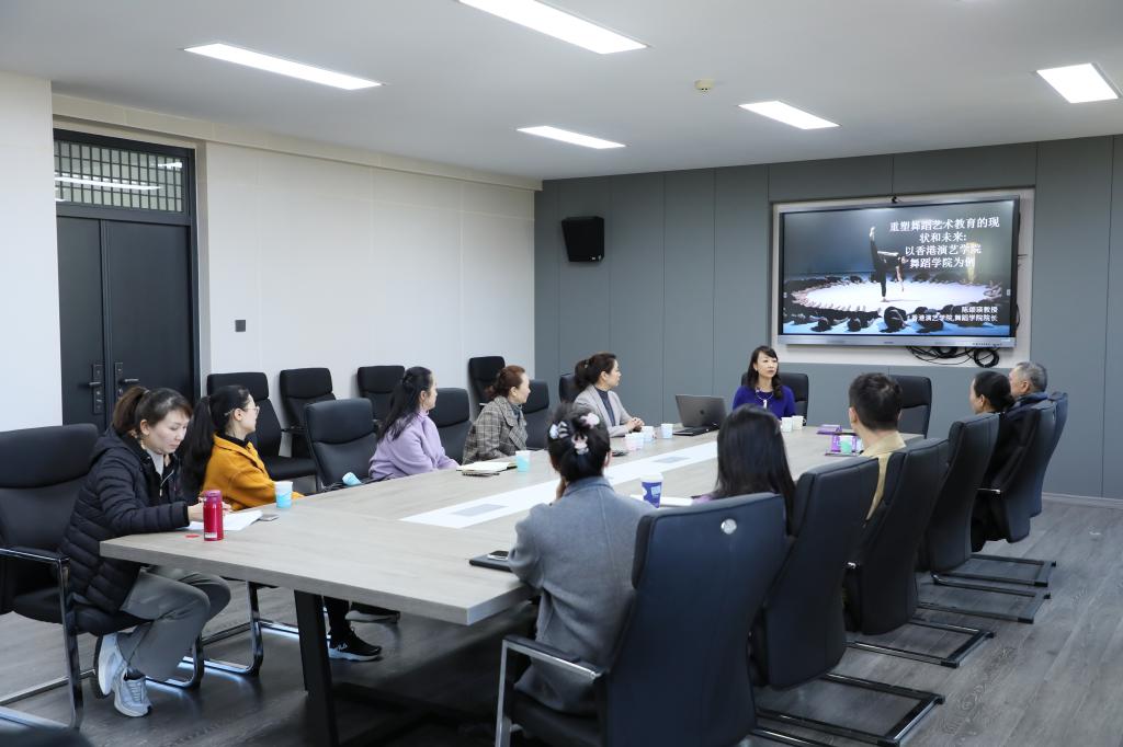 陈颂瑛院长为舞蹈学院师生开展题为“重塑舞蹈艺术教育的现状与未来:以香港演艺学院舞蹈学院为例”的学术交流讲座。盛培琪教授与余碧艳老师分别以“中国古典舞身韵教学案例分享”和“从课堂教学转化为舞台创作”为主题,与舞蹈学院师生进行教学交流。