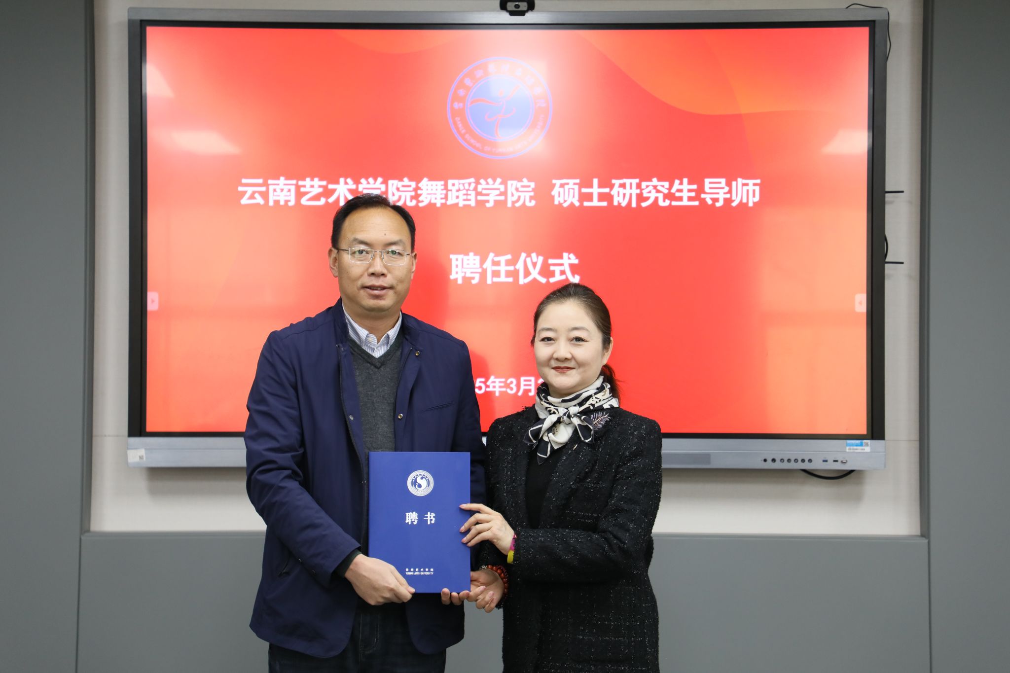 首先,舞蹈学院党委书记朱超代表学院向张晓梅教授颁发舞蹈学院硕士研究生导师聘书,并对张晓梅教授支持学院研究生培养,为学院注入新的力量表达谢意。