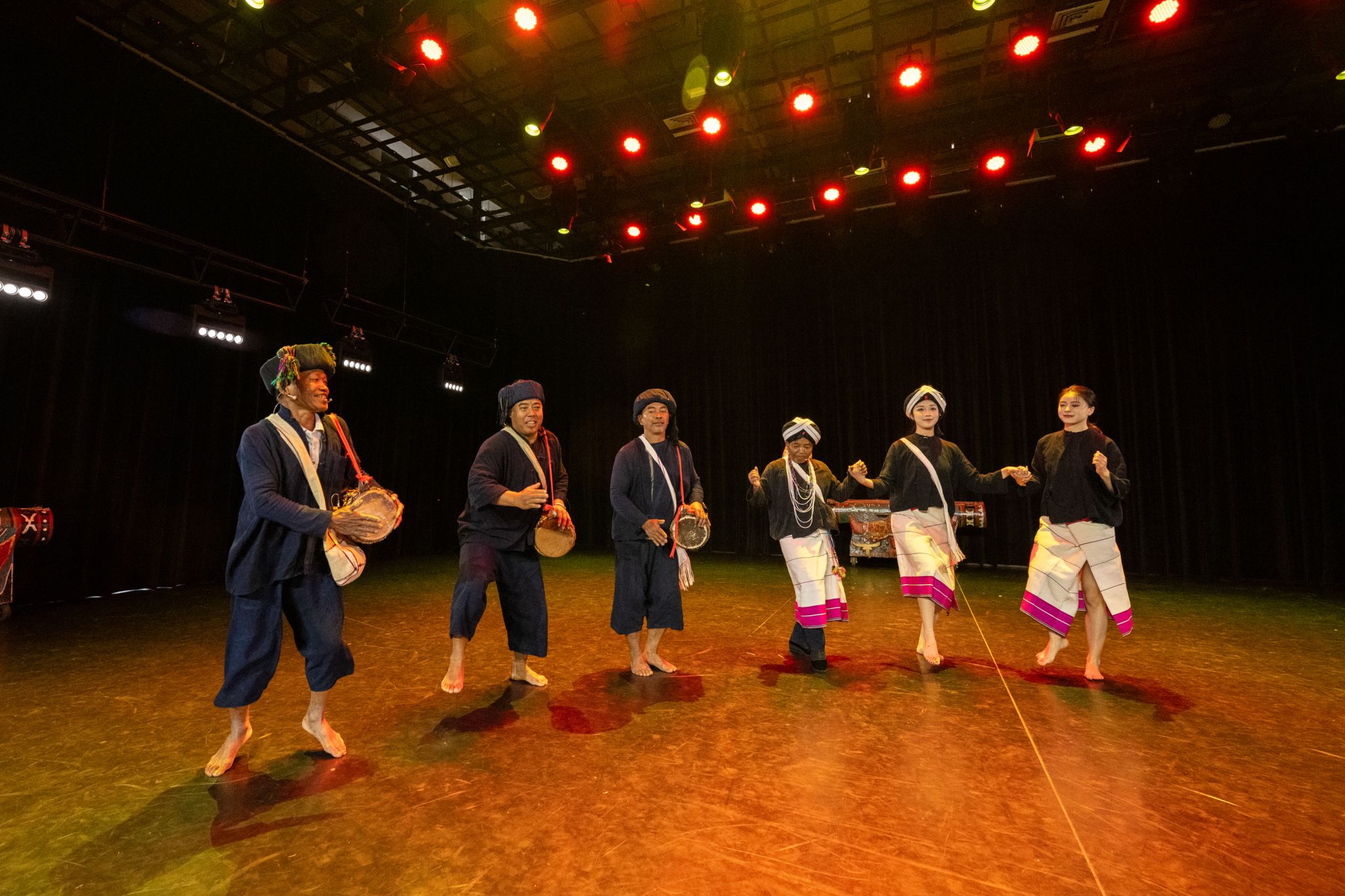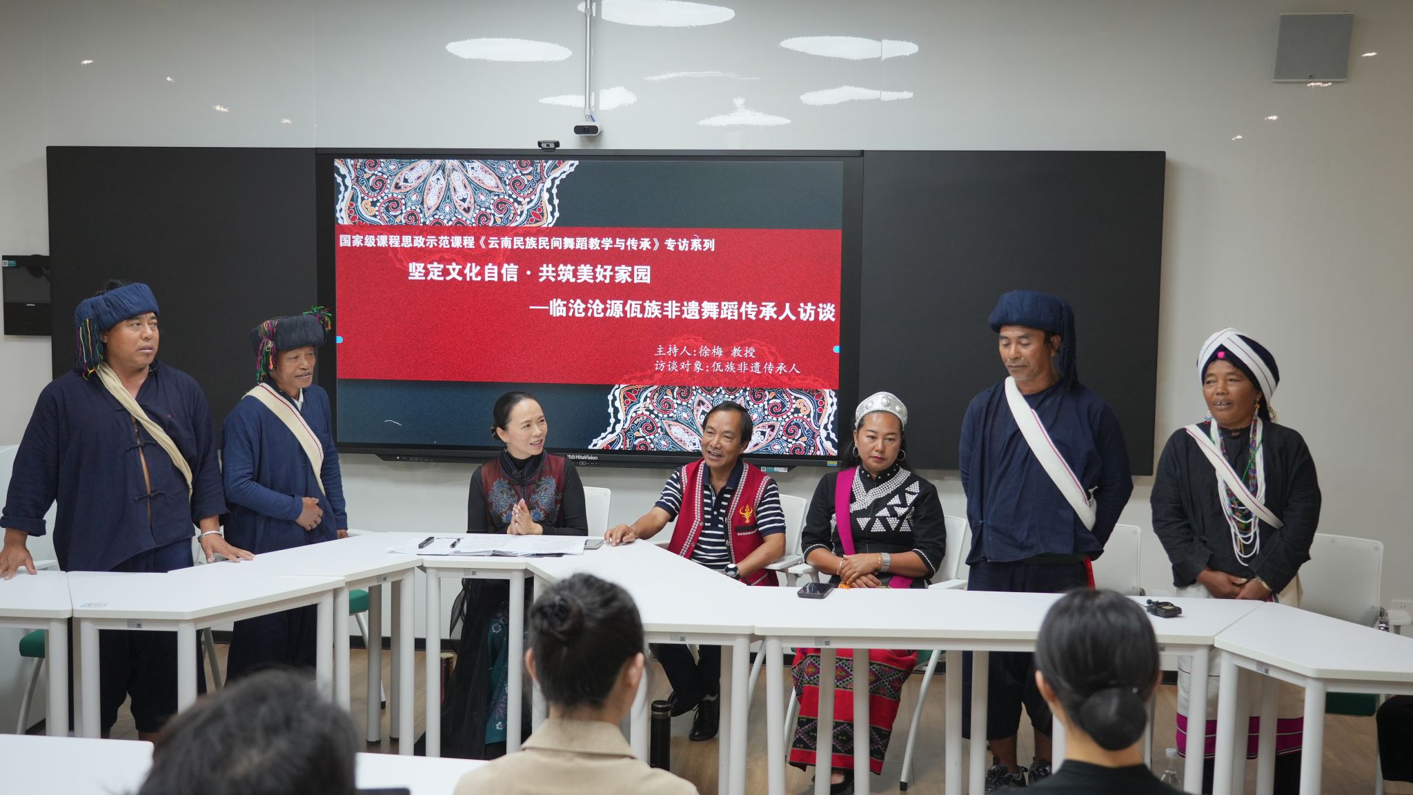为进一步加强首批国家级研究生课程思政示范课程《云南民族民间舞蹈教学与传承》、国家级一流本科舞蹈表演专业《民族民间舞蹈传习》特色课程建设。2025年6月19日-23日,以买球投注官方网站舞蹈学院“非遗进校园”系列活动为契机,特邀沧源佤族非遗专家鲍志明、佤族《甩发舞》省级传承人田秀清、佤族《木鼓舞》县级传承人肖冲、佤族《蜂桶鼓舞》民间艺人魏茸布勒、陈嘎布嘎、卫尼倒、卫依布勒一行7人,为舞蹈学院师生提供了一次学习、观摩和研讨的机会。